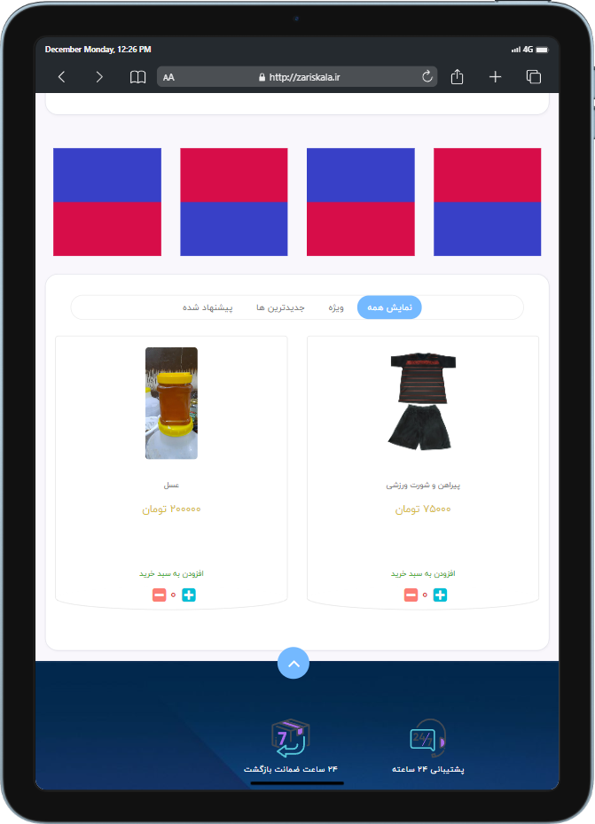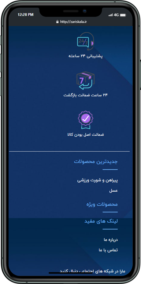 سایت برای فروش محصولات و خدماتتان جزئی جدایی ناپذیر از کسب و کار شماست. علاوه بر فروش حضوری، باید به سمت اینترنتی شدن فعالیتتان پیش بروید. تیم راحت کد با بیش از ده سال سابقه و با استفاده از پرسنل مجرب خود در کوتاهترین زمان ممکن بهترین سایت را برای شما طراحی میکند. زاریس کالا یک سایت برای فروش محصولات خود توسط برنامه نویسان ما طراحی کرده است. در زیر چند نمونه از صفحات این وبسایت قابل مشاهده است: