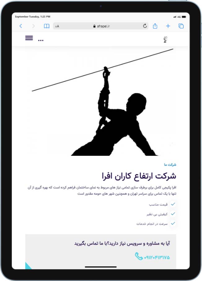 آژانس خدمات کسب و کار راحت کد طراح و مجری سایت این شرکت بوده است. در زیر چند نمونه از صفحات سایت شرکت ارتفاع کاران افرا قابل مشاهده است: