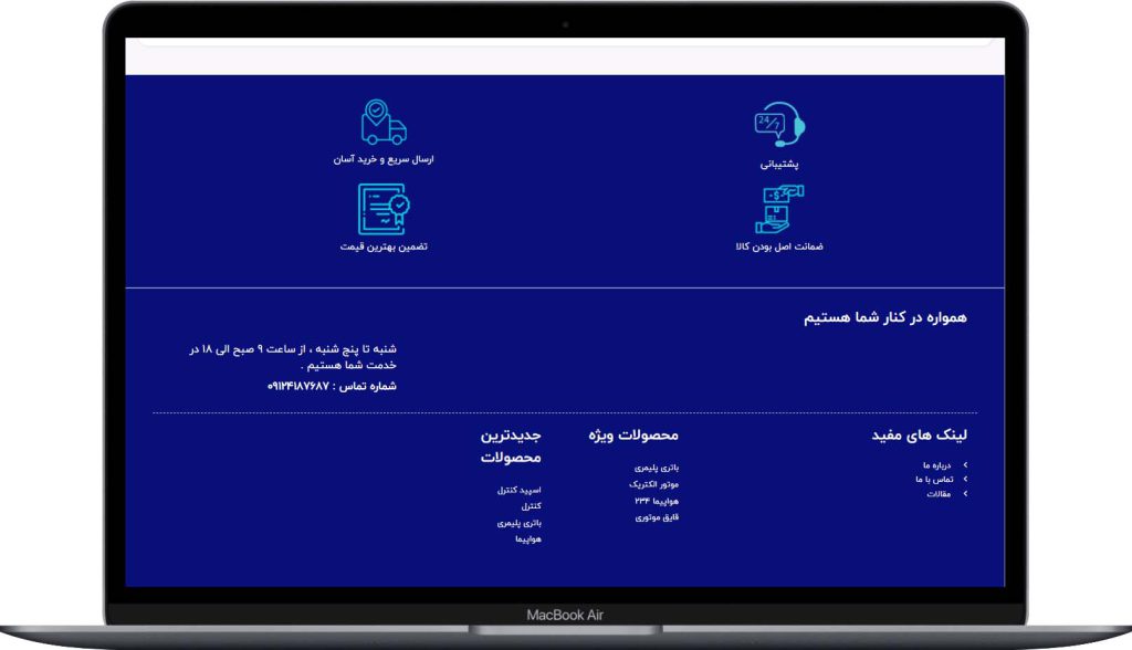 طراحی سایت ضروری ترین اقدامی است که این روزها برای پیشرفت کسب و کار خود باید انجام داد. مدل ایران یک سایت سرگرمی برای فروش انواع لوازم کنترلی است که بسیار مخاطب و محبوبیت دارد. طراحی وبسایت این فروشگاه بر عهده تیم برنامه نویسان راحت کد بوده است. در زیر چند نمونه از صفحات این فروشگاه اینترنتی قابل مشاهده است.