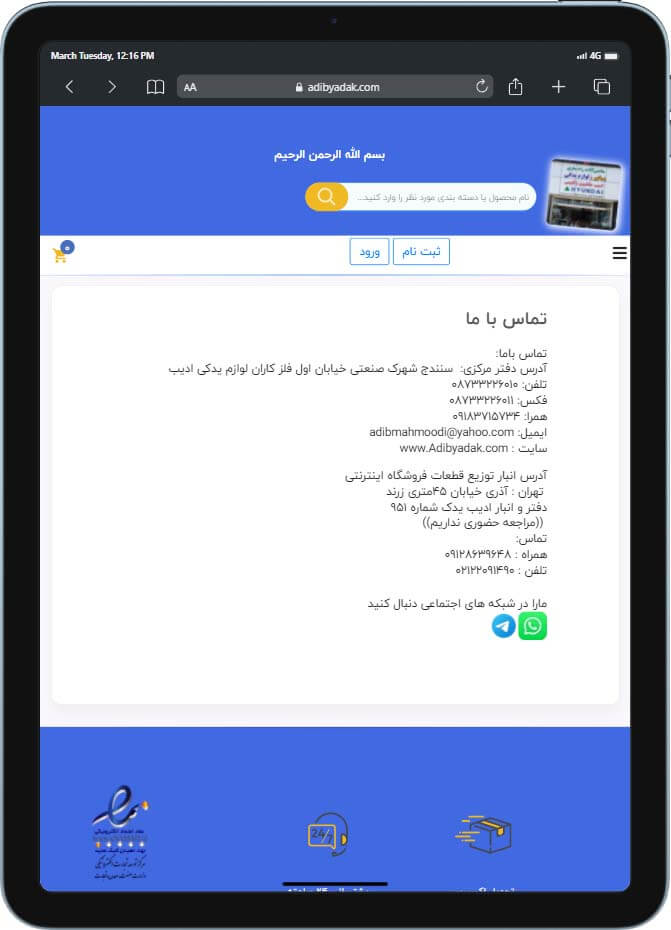 طراحی سایت لوازم یدکی ادیب یدک یکی دیگر از نمونه های وبسایت طراحی شده توسط شرکت برنامه نویسی راحت کد است. آژانس خدمات کسب و کار راحت کد با کمک برنامه نویسان حرفه ای خود توانسته به یکی از بهترین و مورد اعتماد ترین شرکت های برنامه نویسی تبدیل شود. اگر هنوز وارد دنیای فروش اینترنتی نشده اید، پیشنهاد ما به شما اینست که در اسرع وقت اقدام به طراحی سایت نمائید. این روزها کمتر کسی است به فروش اینترنتی محصولات و خدمات خود روی نیاورده باشد. شما از این قاعده مستثنی نباشید.