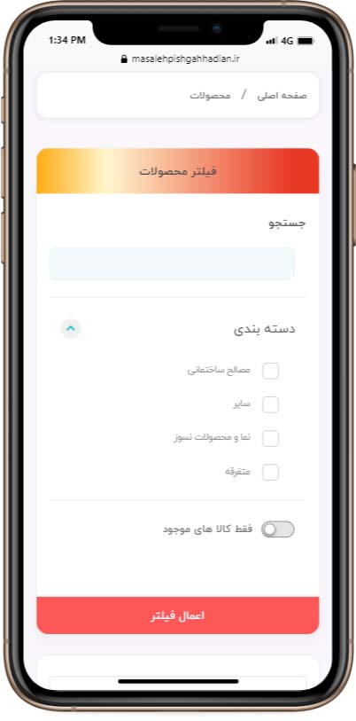 نمونه کار طراحی سایت فروشگاهی مصالح