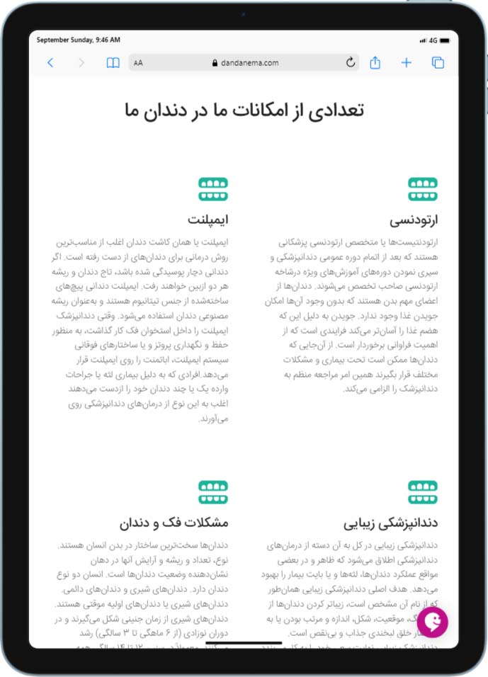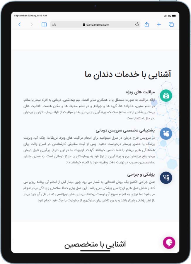وب اپلیکیشن طراحی شده برای کلینیک دندانپزشکی dandanema