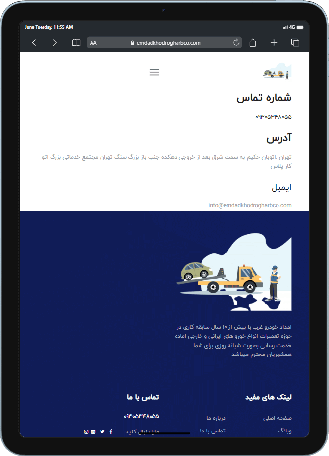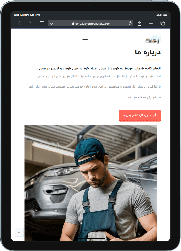 نمونه طراحی سایت وردپرس امداد خودرو به شما یک دید کلی از سایت معرفی ورد پرس میدهد. اگر هم اکنون در حال مطالعه این صفحه از وبسایت میباشید حدس ما این است که به دنبال بهترین نمونه برای سایت خود میباشد. نمونه کارهای بارگزاری شده در وبسایت راحت کد میتواند برای انتخابی راحت تر به شما کمک کند. اگر تمایل به مشاهده نمونه کارهای بیشتر دارید میتوانید از این قسمت وارد صفحه نمونه کارها شوید.