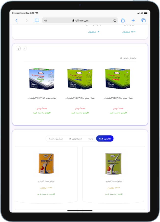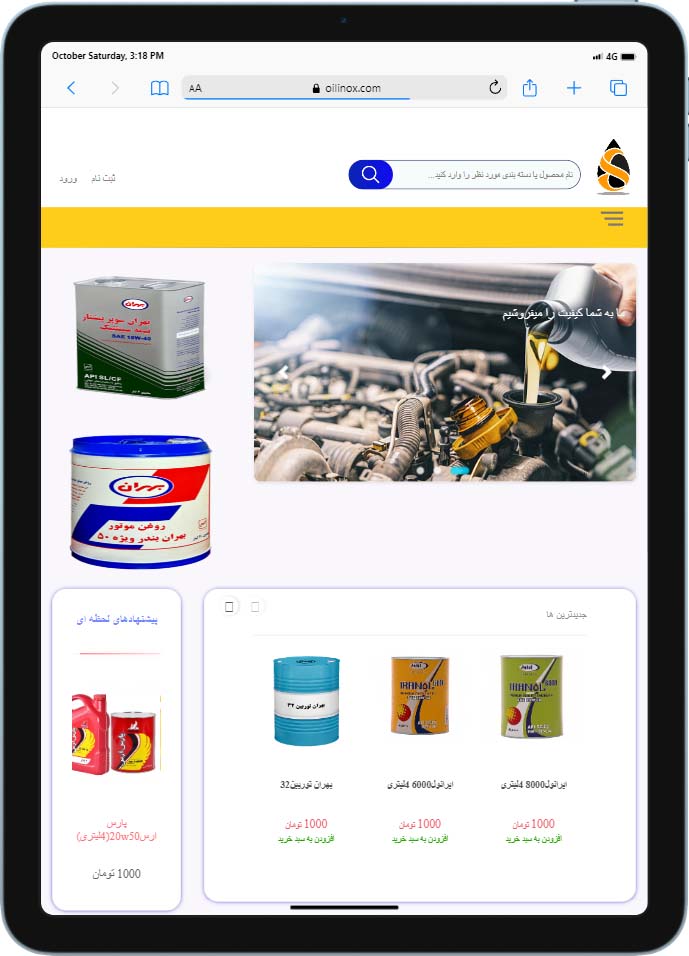 طراحی سایت این شرکت، توسط آژانس خدمات کسب و کار راحت کد RahatBin به سفارش مشتری عزیز طراحی گردید. در این سایت، کلیه محصولات مربوط به روغن موتور به تفکیک برند، و مبالغ قابل پرداخت قابل مشاهده است.