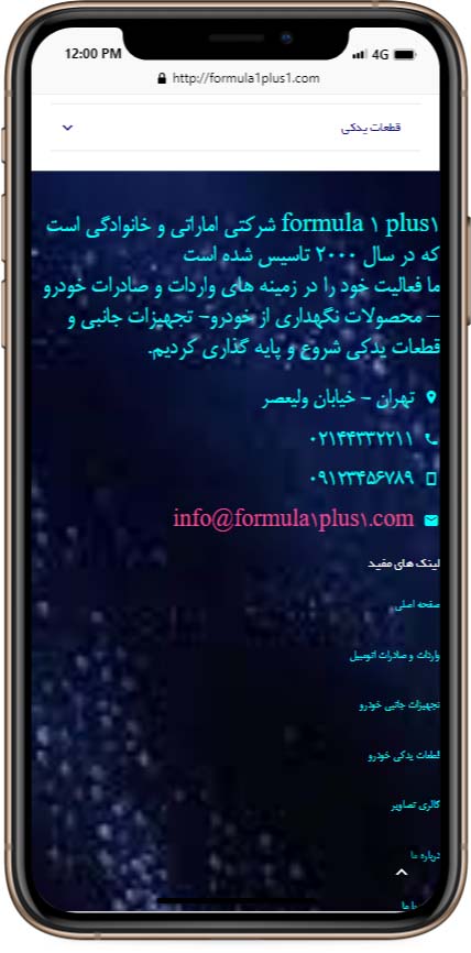 این شرکت یکی از با تجربه ترین ها در زمینه فروش قطعات و نگهداری خودرو میباشد. قطعات اورجینال را بدون هیچ گونه واسطه ای در اختیار مشتریان خود قرار میدهد. درسال 1400 فروشگاه اینترنتی فرمولا وان توسط تیم راحت کد طراحی شده است.