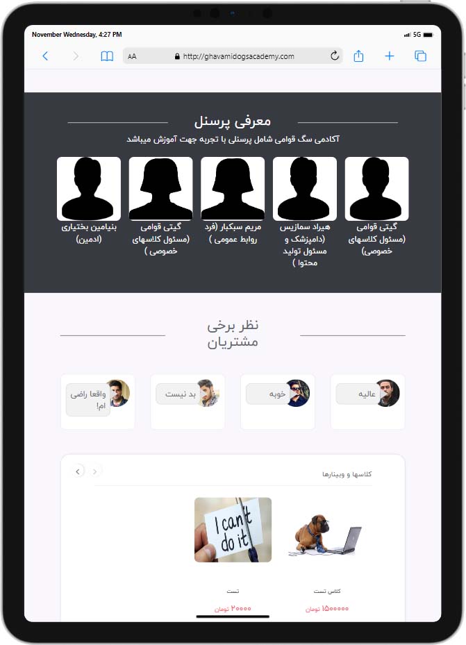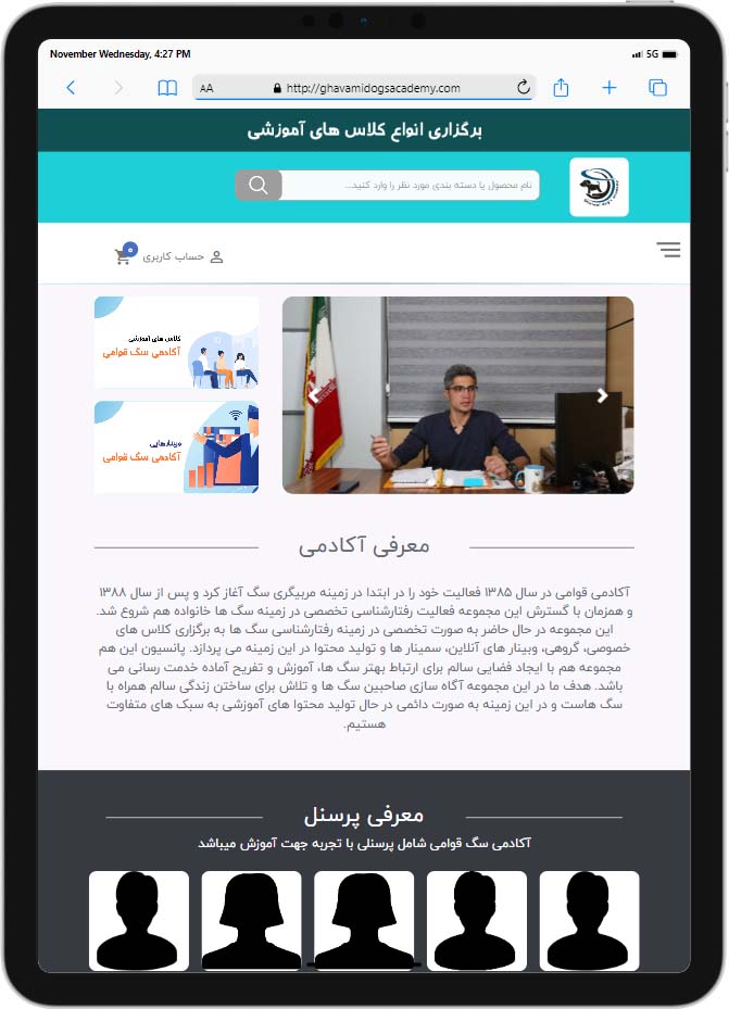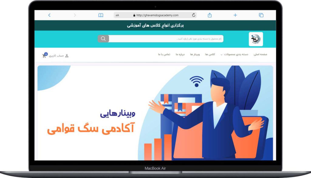 نمونه کار طراحی سایت فروشگاهی قوامی یک وبسایت طراحی شده برای پت شاپ و تربیت سگ است. در این وب سایت وبینارها و کلاس آموزش های کاربردی و مفیدی بارگزاری شده است. طراحی سایت قوامی بر عهده راحت کد بوده است.