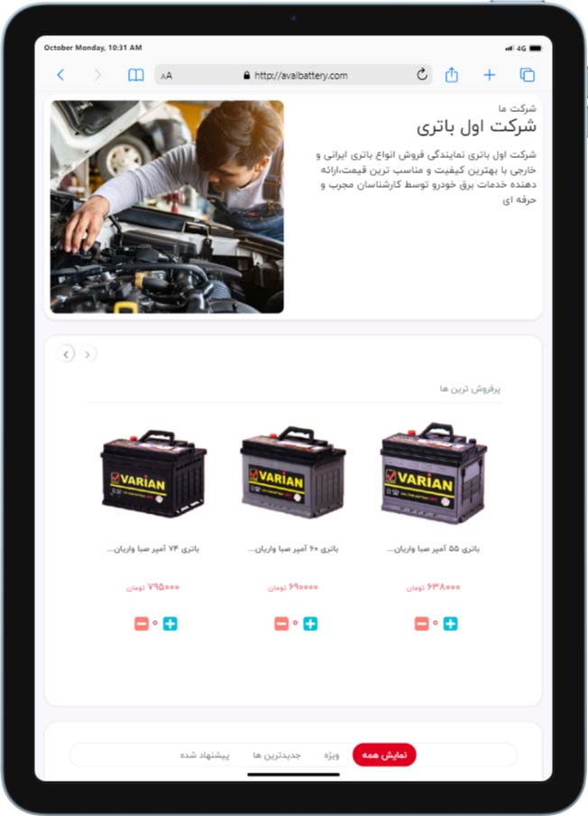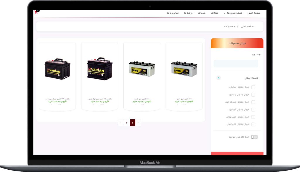 نمونه کار طراحی سایت فروش آنلاین باتری