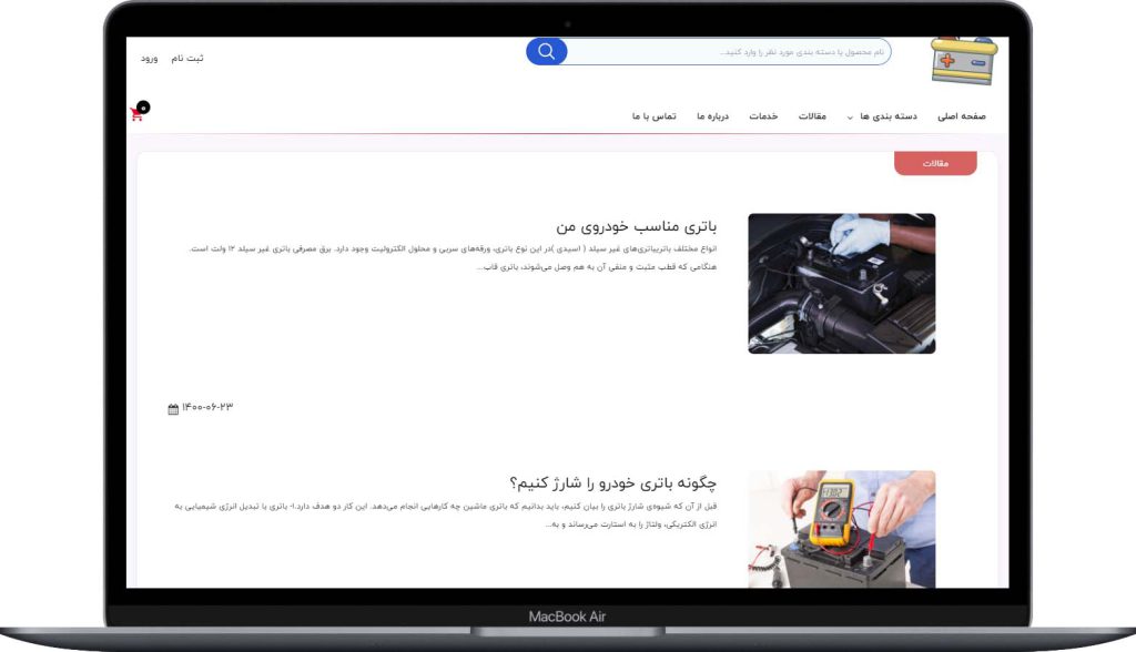 نمونه کار طراحی سایت فروش باطری خودرو