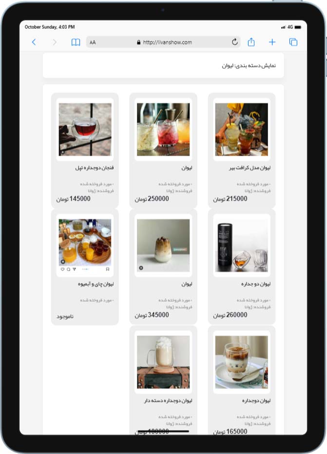 نمونه کار طراحی سایت فروشگاهی لیوان شو