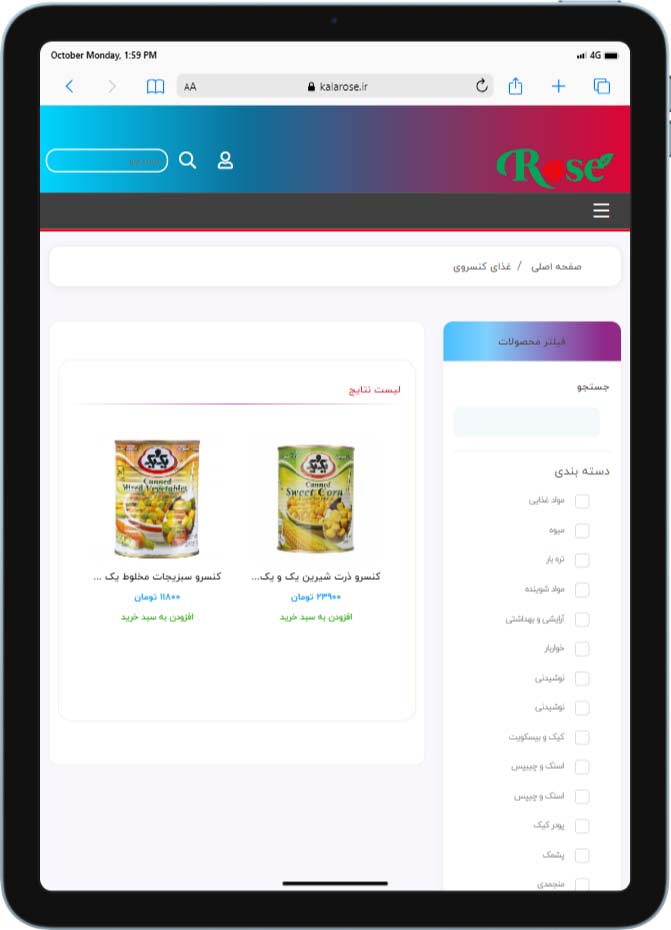 نمونه کار فروشگاه آنلاین کالا رز فروش آنلاین میوه و پروتئین و سبزیجات