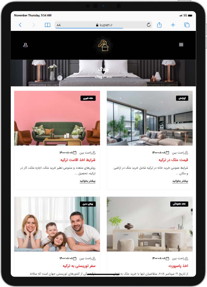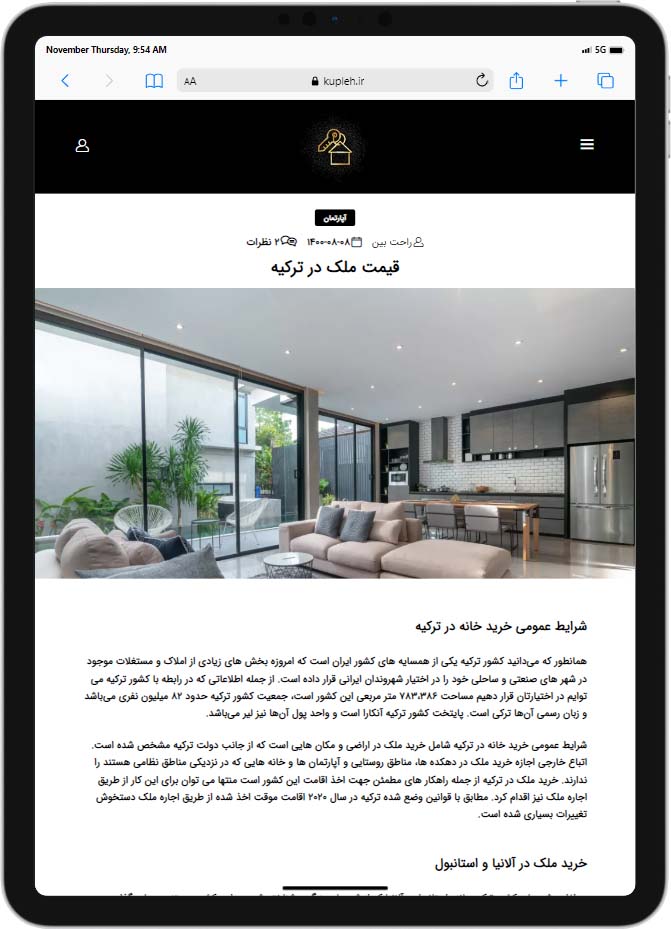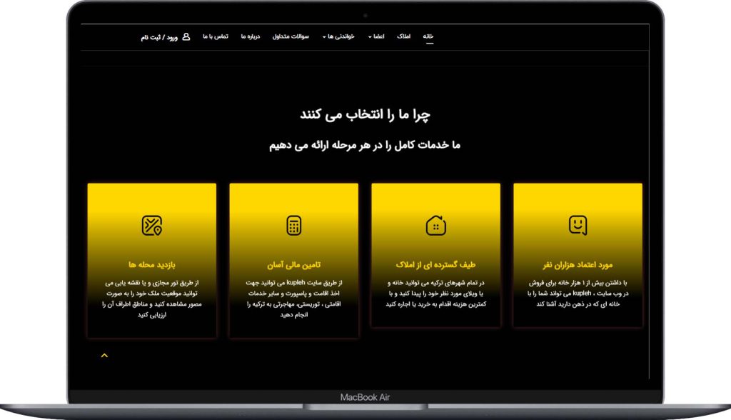 یکی از نمونه کارهای طراحی شده تیم ما سایت املاک کوپله است. در این سایت میتوانید خانه رویایی خود را در ترکیه پیدا کنید. همچنین این گروه مراحل اخذ اقامت ترکیه را با شما طی میکند.