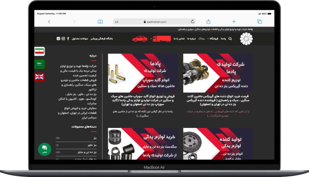 طراحی سایت تولید قطعات یدکی خودرو