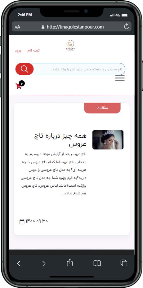 طراحی وبسایت فروشگاهی لوازم عروسی به کسانی کسب و کارشان در این حوزه میباشد کمک میکند تا مشتریان و مخاطبان خود را به راحتی پیدا کنند. شرکت برنامه نویسی راحت کد با سالها تجربه میتواند شما را به یک فروشگاه اینترنتی تبدیل کند. برای پیشرفت و پیشبرد اهداف شما تمام تلاشش را میکند. وب سایت هایی که توسط تیم برنامه نویسی راحت کد طراحی میشود همگی حرفه ای بوده و استانداردهای لازم را دارا هستند. این استانداردها شامل سرعت بالای لود، ریسپانسیو بودن،سئو بیس بودن و … باعث شده که بیش از صدها مشتری راضی را به خود جذب کنیم. اگر شما هم در حوزه خدمات و فروش محصولات عروسی فعالیت دارید نمونه کار های مارا مشاهده فرمایید. وبسایت فروشگاهی لوازم عروسی تینا گلستان پور یکی از این نمونه هاست که در زیر قابل مشاهده است:
